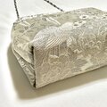 西陣織プラチナ箔の華錦花鳥亀甲という豪華でおめでたい柄のリユース帯をクラッチバックにお作り致しました。