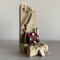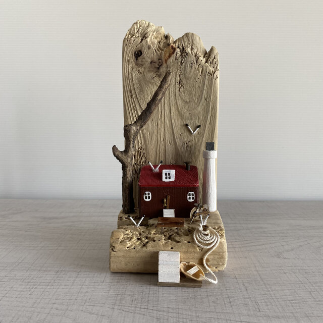 先ほど受け取りました。 流木の風合い、カモメ、岬の先にある白い壁の一軒家…ノスタルジーに誘われ.風や波音が静かに聴こえてきそうな雰囲気のある作品です。早速、リビングの棚に飾りました。 ありがとうございました!