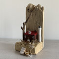 流木、ねじ・釘(赤錆加工)、ホワイトウッド(欧州スプルース、ドイツトウヒなど)、ステイン、ペンキ等で製作。ヤスリでダメージ感を演出しています。「潮騒とカモメの鳴き声、風の音」を感じていただければ幸いです。