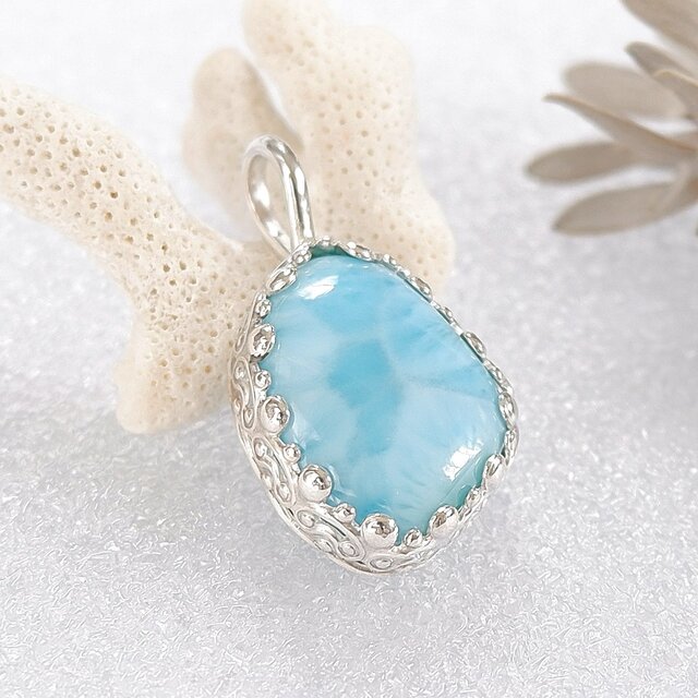 ラリマーの飾り枠ペンダント 天然石アクセサリー ペンダントトップ 一点物