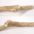 流木は 枝が伸び枝分かれの跡に方向を変えて伸びた形状、枝分かれ部分には2つの木の節が見られ、ともに中央が窪んでいます。