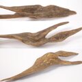 流木は皮一枚というくらいの薄さ、一方の端は V字 に入る形状、もう一方は そのちょうど逆のような V字 に突き出るような形状です。