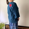 袖ボタンと後ろ長めの7分袖ブラウス バックハートに心を込める 藍絣