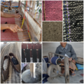 手織り綿の特性上、作品にはシボやネップ等(最後の写真右上部参照)が生地表面に現れる場合がございます。人の手を介して決して同じものが出来上がらない手織り綿の生地に、越天楽のデザインを吹き込んだ作品です。あらかじめご了解の上ご購入ください。なるべくいい状態でお届けいたしますが、気になる場合は細いかぎ針等で裏面から優しく引き抜いていただくと収まるものもあります。素朴で優しい風合いを楽しんでいただければ幸いです。