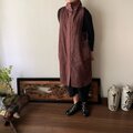 多くのお客様にご好評いただいていますが、特に人気なのはゆったりした方がほっそり見えるベストづかいと、ほっそりした方が前ボタンを留めてワンピースづかいで、お店では体型にの違うお二人が色違いをお買い上げいただいたこともあります。