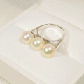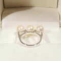 7.5mmアコヤ真珠とSV925の指輪(9号、サイズ変更無料、ロジウム、美しい照り、マルチカラー、ピンク、ゴールデン)