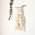 みるく色の上質なメリノウールをたっぷり使用し、極太モヘアやファンシーヤーン等と組み合わせた優しく可愛らしいタペストリー。