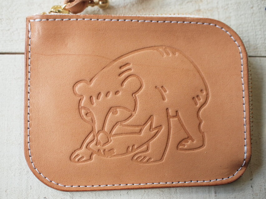 きっちり型押しをしているので、経年変化や使い込んでレザーが艶やかに色濃くなったときにも『木彫り熊さん』は居続けてくれます
