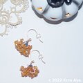 今回は前回お作りしたトライアングルのパーツより小さなパーツに、沢山のマンダリンガーネットを下げたピアスをお作りしました。
