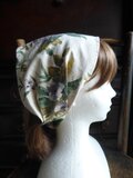 広げると幅が20㎝ありますのでスカーフのようにすっぽり頭が隠れますので日よけにもなります。折り込んで好みの幅にできます。