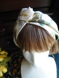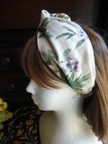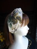 セピア色の花柄のクラシックな雰囲気のクロスヘアバンドです。素材はオックス地のコットンです。厚めの生地なのでボリュームが出ています。