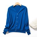 ココだけの自信作 年中愛用!コットン100% 長袖Vネックカーデ ニットシリーズ 紫みがかった深い青色220902-08