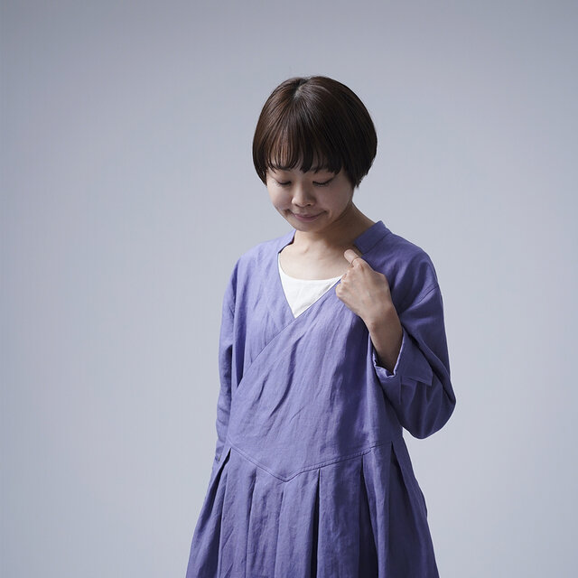 【wafu / リネンワンピース】心の琴線にふれる リネンドレス 超高密度 リネン / 藤紫 a030i-fjm1