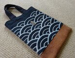 元々半纏だったものから仕立てたシンプルなトートです。底は酒袋を持ってきました。内袋緑の薄手の木綿。風呂敷だったもので小さなポケットをつけてあります。