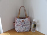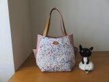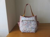 リバティフェルダとスモーキーピンクのバイオウオッシュ帆布でちょっと大きめのラウンドトートバッグを作りました。