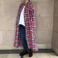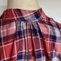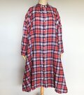 赤×ブルーチェックAラインシャツワンピ 受注制作