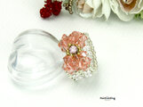 スワロ・ローズピンクリボンのリング(スワロ/キュービックジルコニア ビーズリング)《ビーズアクセサリー》