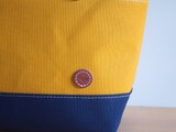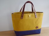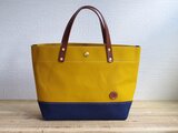 レザーハンドル 帆布トートバッグ マスタード×ネイビー