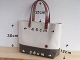サイズ : 縦300mm(取っ手含まず)×横450mm(口側) 360mm(底側)×マチ120mm