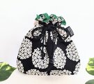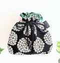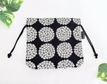 北欧風サークルフラワー柄ブラック、綿オックス地の巾着袋です。