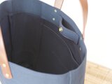 レザーハンドル (ショートハンドル)帆布トートバッグ A4横長 ネイビー