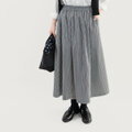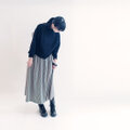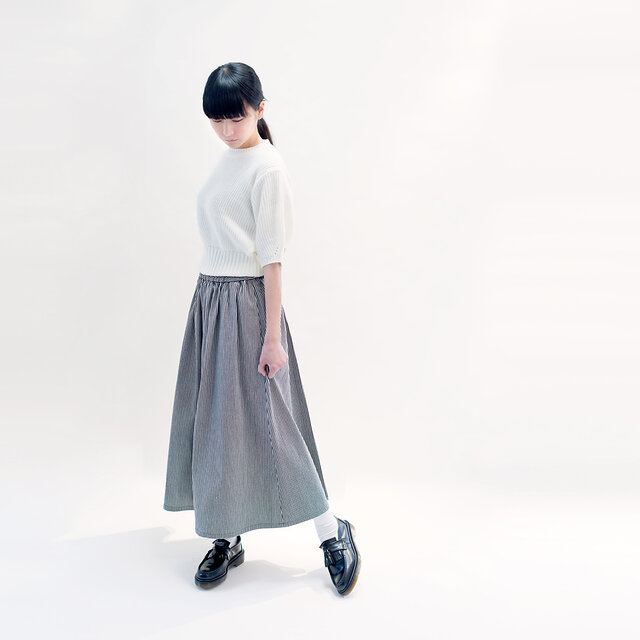 岡山デニム 毎日を上質に心地よく 濃紺×オフ白 ヒッコリーストライプ ロングスカート ●LILIE-SK-NAVY