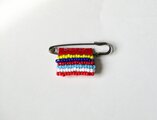 6色のビーズをイタリア革に縫い付けて、スカーフやカーディガン、コートの襟などを留めるカブトピンを作りました。
