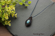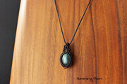 ラブラドライトのマクラメペンダントネックレス/ダークネイビー×ビターブラウン