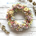 【優しい色使い!】淡いパステルカラーのリース ♯ドライフラワー ♯プチギフト ♯ドライフラワーリース