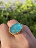 ルチルクォーツ×ターコイズ ダブレット オーバル 立体カット シルバーSV925製リング