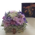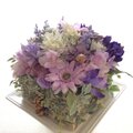 ◇花材は、ラナンキュラス、トルコキキョウ、デルフィニウム、ガーベラ、ダリア、ラベンダ ー、紫陽花、リンドウ、バラ、ピンポンマム、ブバリア、アジアンタム、レースフラワー