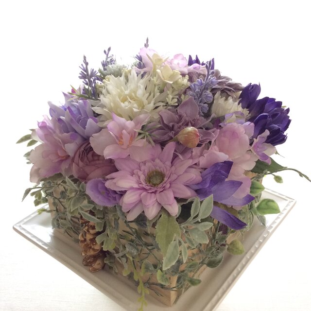 作品、無事にお迎えしました。 やさしい色合いのアレンジメント、お世話になった先輩の退職祝いに購入させていただきました。 きっと気に入っていただけると思います。 この度は、素敵な作品をありがとうございました。