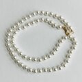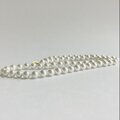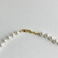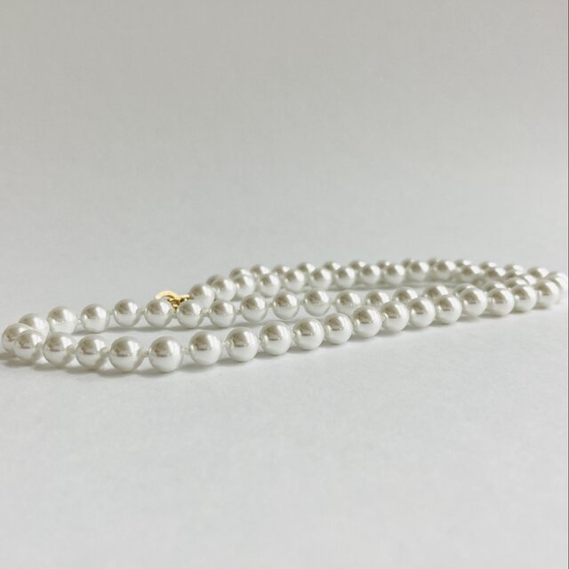 オールノットネックレスの特徴として、万が一糸が切れた場合でもばらばらにならず最小限で抑えられる点や、玉同士が密着していないので擦れあいにくく傷も付きにくい点・また玉同士が少し離れている為、首回りにフィットしやすくなっている点等がございます。この仕様は特に海外で人気があり、比較的高品質アクセサリー類によくみられる仕様です。※弊社の自社工場にて塗装したパールになります。品質の状態も維持されており、剥がれや大きな目立った傷などもございません。稀にピンホールや小さい凹み等が見られる場合がございますが、自社にて検品の上、品質に問題は無く許容範囲とさせて頂いております。