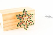 『クリスマスの色の雪結晶のブローチ』