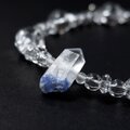 デュモルチェライトインクォーツの原石をポイントに、水晶をつないだ煌めきの美しいブレスレットです。