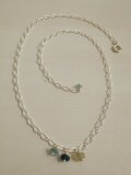 チェーンのお好きな位置に引きわを止められ長さの調整が可能です。チェーンのエンドにもローマンガラスをプラス。バックスタイルも楽しめます。