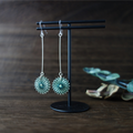 華奢なシルバーワイヤーの先に、絹糸で作った小さな花がそっと揺れるイヤリング。