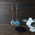 雨の日に咲く 青|涼やかなブルーの絹糸イヤリング|シルバーワイヤー