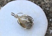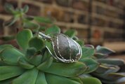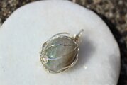 グレイがかった色目に、一部、深みのある美しいグリーンが入っています。とても神秘的な表情を持つグリーンランダイト。シンプルにシルバーのワイヤーで巻きました。