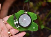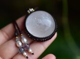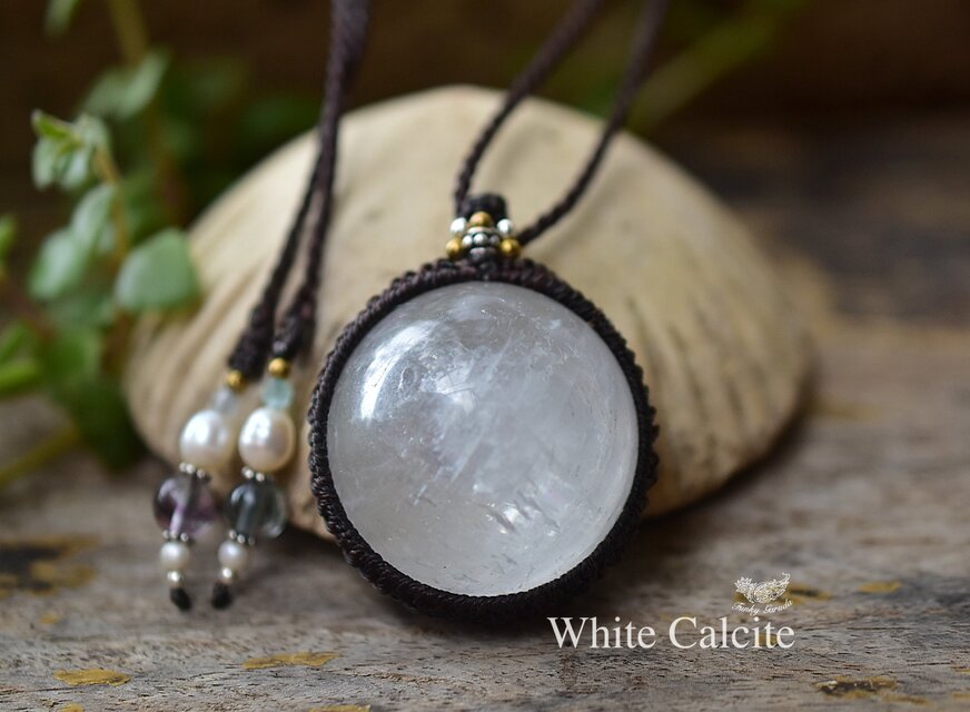 悩ましい丸★虹入りホワイトカルサイト マクラメペンダント686