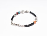 ビーズの間のとても小さなシルバービーズや、お饅頭のような形状のビーズ、留め金はカレンシルバーです。