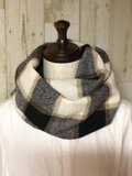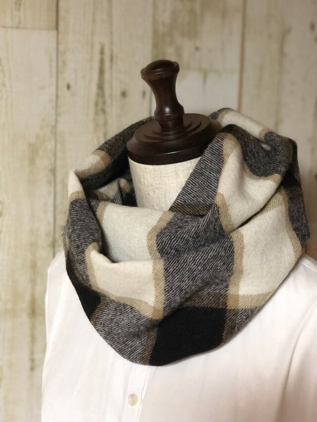 楽チン♪かぶるだけ★ウールガーゼのふんわりスヌード(ブラック・キャメル・ブロックチェック)