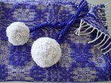 手織り オーバーショット織 ポンポンマフラー Handwoven TMMS22133