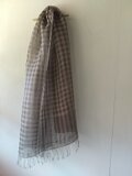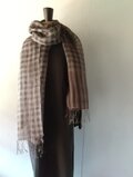 ウールストール(シェットランド・焦げ茶にグレーボーダーあり)W26-2 sale弾力のある手触りが心地よいです。ちくちく感は言われてみれば、くらいに感じました。自然なお色もいいですね、灰色の毛の部分がなんとも愛おしく感じます。厳しい自然に暮らす羊さんに感謝して大事に使います。ユニークな作品をどうもありがとうございました。