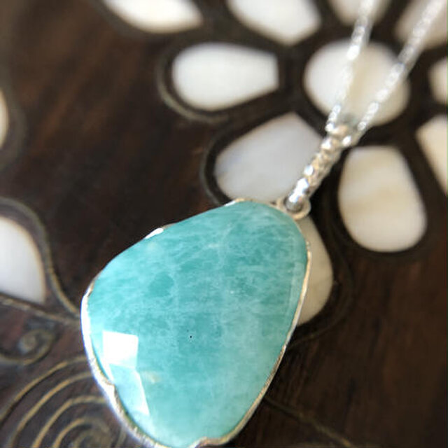 キラキラと内側からの輝きがとても綺麗な上質なアマゾナイトです。