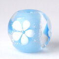 ベビーブルーのベースに銀箔をキラキラと散らし、その上にブルーのにじみのある白い花を三つ浮かべました。