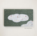 雲の上で遊んでいる羊たち。空には雪が降り、星々が煌めきます。