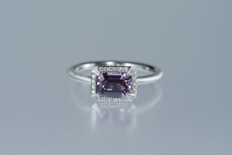 グレイッシュな色味と透明感が美しいバイオレットスピネルをリングに仕立てました。