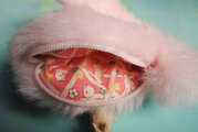 ●おもてはアクリルボア、内側は木綿布で作ってあります。しっぽを引っぱるとおなかのファスナーが開きます。