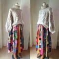 パッチワークスカート 着回し 大人可愛い 大人カジュアル ギャザースカート ロングスカート フレアスカート マキシ丈スカート チェック 花柄 ストライプ YUWA パリ ロマンティック ゆったり ウエストゴム サイズフリー ロングシーズン対応可能 ご褒美 1点もの 赤 黄色 ピンク 紫 青 黒 茶 紺 白 ベージュ ピンク オレンジ 緑 カーキ グレー 水色